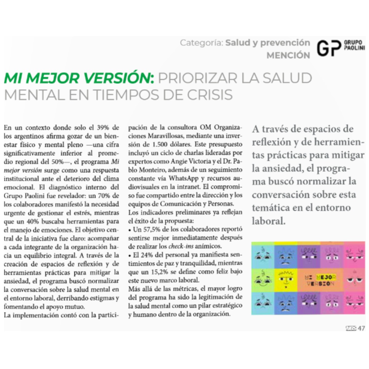 El Sistema de Gestión de la Seguridad y Salud en el Trabajo de la operación en La Pampita de Minerar S.A. fue evaluado y desde el día 11 de Septiembre de 2025 hasta el 27 de Julio de 2028, cuenta con certificado en cuanto al cumplimiento de los requisitos de IRAM ISO 45001:2018 para las actividades de «Destape, Perforación, Voladuras, Extracción, Transporte, Alimentación a trituradora, Mantenimiento de Caminos, Mantenimiento de Equipos y Administración en Obrador La Pampita».